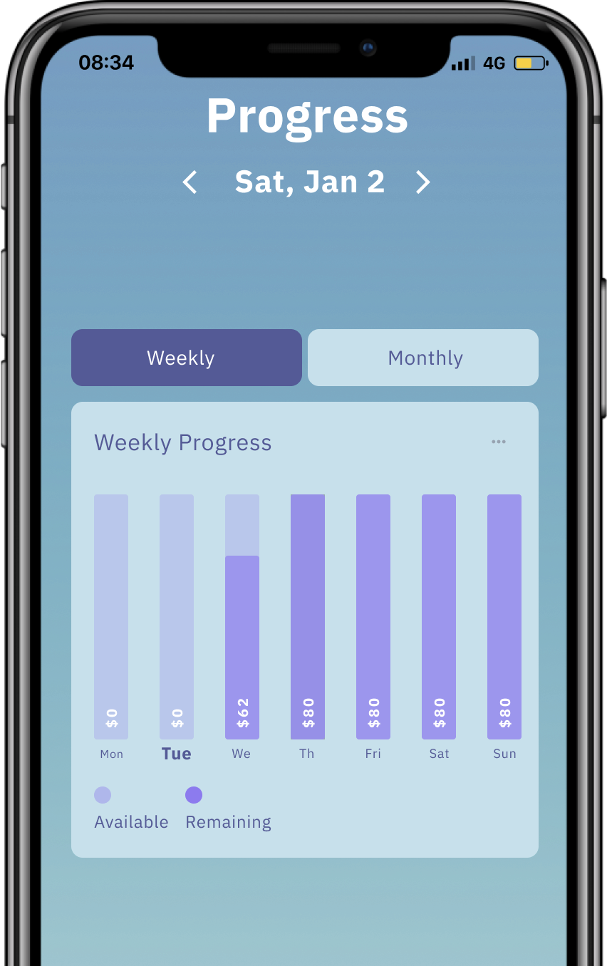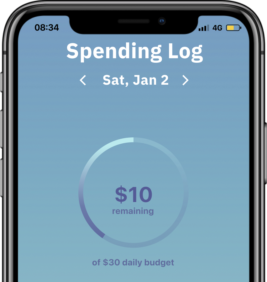 Set your daily food budget, log every food expense, and let any unspent funds carry over to the next day